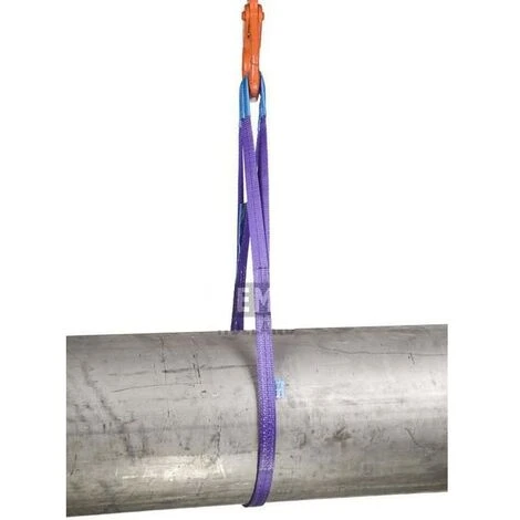 Élingue plate 1 tonne 4,0 m Informations techniques : Elingues en trois couleurs, marquées au centre par des rayures noires tissées qui indiquent la charge de travail sûre (en tonnes) en cas d’utilisation simple La charge de travail double en cas d’utilisation double Dans ce cas, un facteur de séciruté 7 est utilisé Toutes les élingues sont équipées d’une étiquette explicite et des boucles renforcées portant la marque CE pour informer le client qu’elles correspondent aux normes légales Souple et solide Ne causent ni frottements, rayures, noeuds, torsions ou blessures aux mains Absorbe très bien les chocs Couleur : Violet Capacité de charge maximale : 1000 Kg Capacité de charge de service sécurisée : 800 Kg Longueur étriée (m) : 4 Longueur de travail (m) : 2 Largeur/diamètre total (mm) : 30